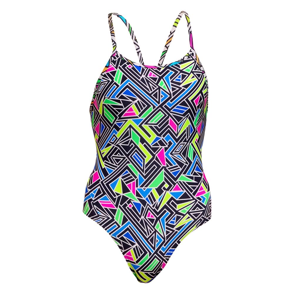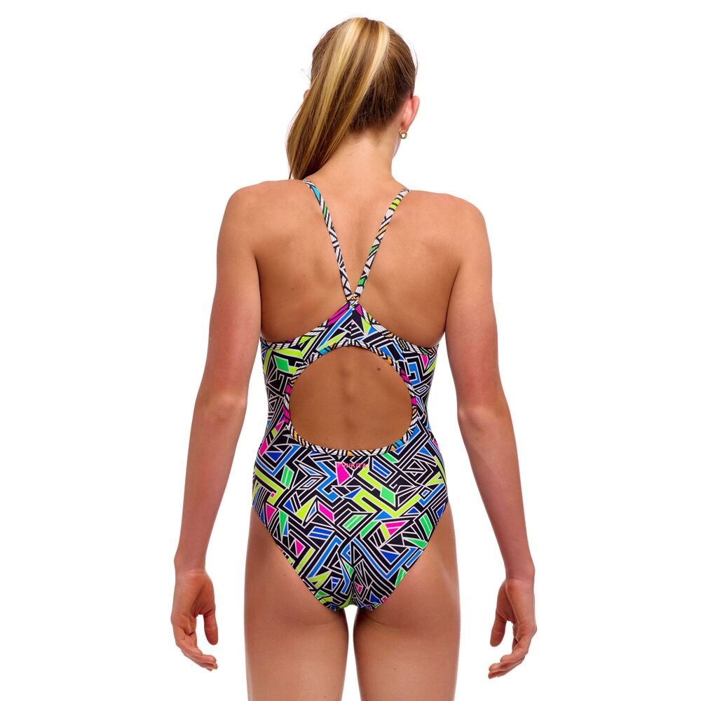 Features a circular cut-out back. With front lining and Funkita embroidery, this easy style says it all.