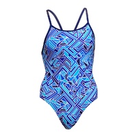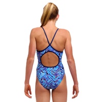 Funkita Girls Blue Bits ECO Diamond Back One Piece Swimwear, Girls Full Piece Swimsuit [Size: 8]