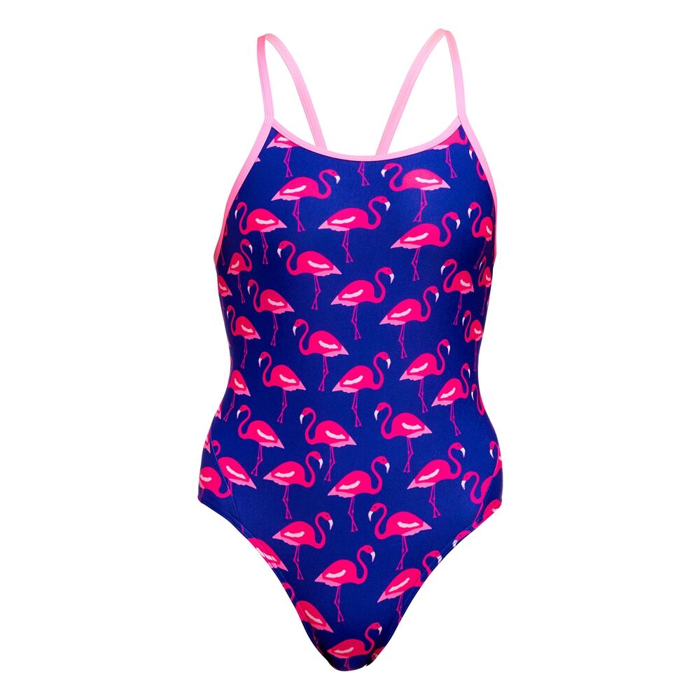 Features a circular cut-out back. With front lining and Funkita embroidery, this easy style says it all.