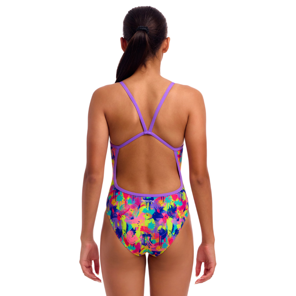 Funkita Girls Mess Match ECO Single Strap One Piece Swimwear, Girls Full Piece Swimsuit [Size: 8]