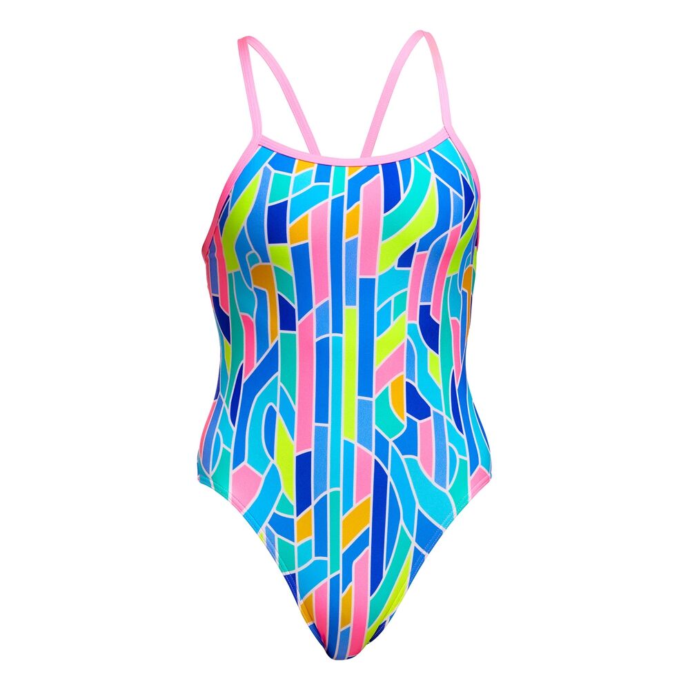 Funkita Girls Pillared ECO Single Strap One Piece Swimwear, Girls Full Piece Swimsuit [Size: 8]