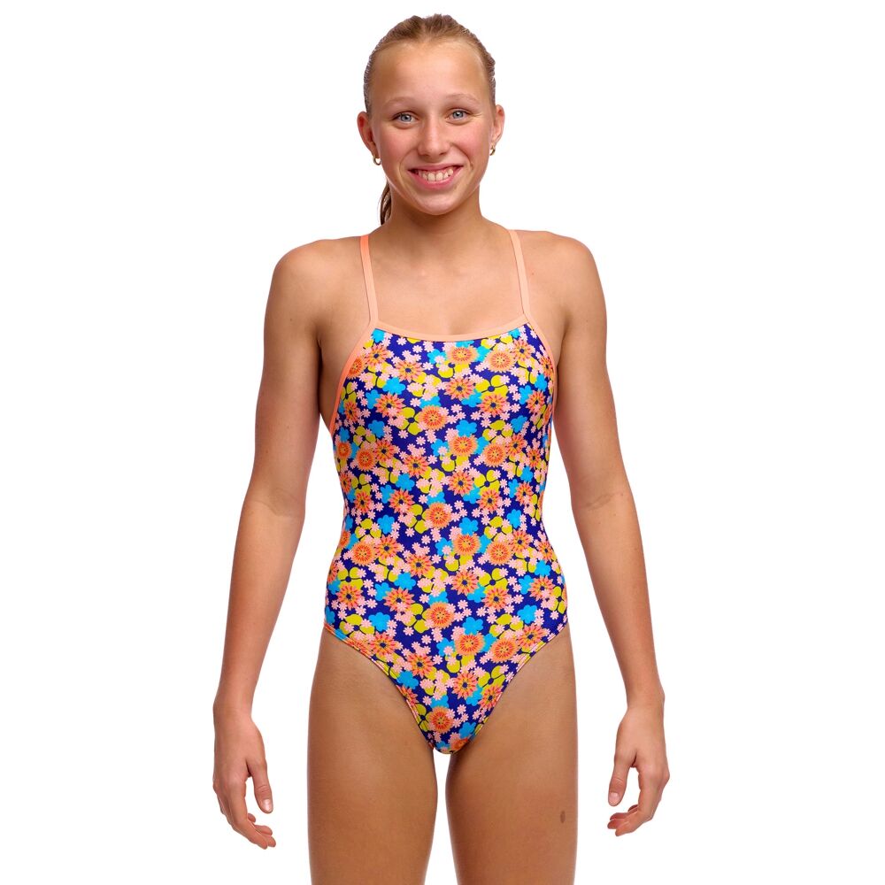 Funkita Killer Flowers Girls Tie Me Tight One Piece Swimwear, Girls Full Piece Swimsuit [Size: 10]