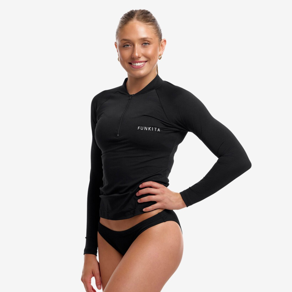 Funkita Ladies Long Sleeve Rash Vest, Women's Sun Top - Still Black [Size: 8]