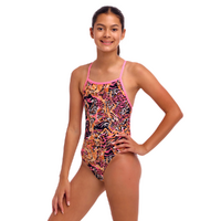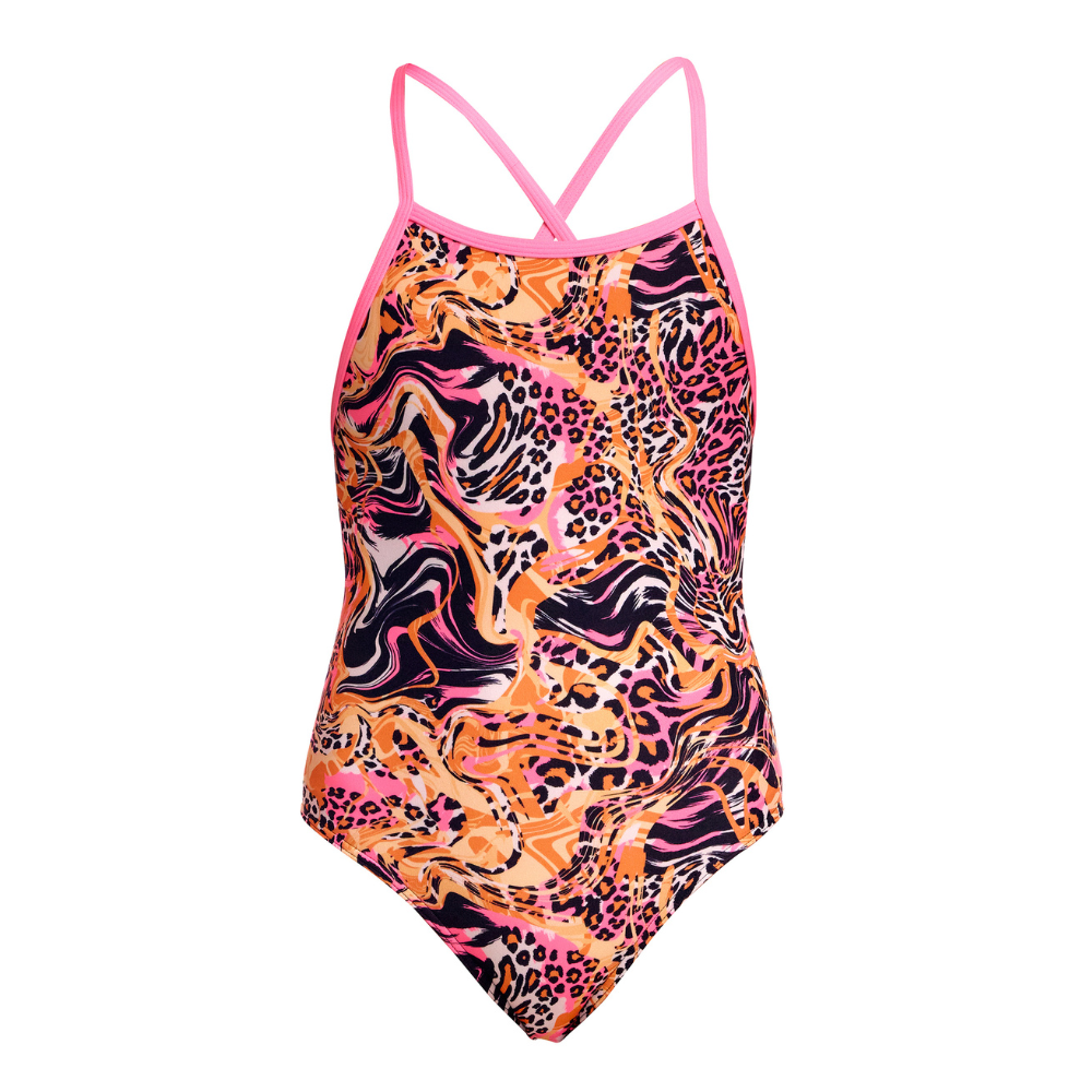Funkita Tipsy Tiger Girls Tie Me Tight One Piece Swimwear, Girls Full Piece Swimsuit [Size: 10]