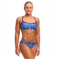 Funkita Women's Blue Bits ECO Sports Bikini Two Piece Swimwear, Ladies Two Piece Swimsuit [Size: 8]