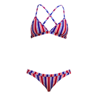A Fun triangular bikini top with adjustable single straps, crossing over at the back.
