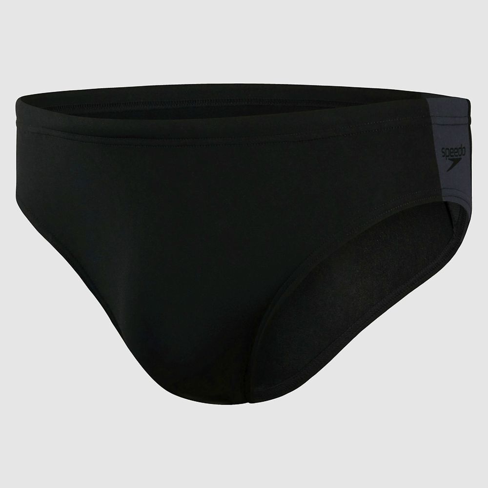 Speedo Men's Boom Logo Splice 7cm Brief Swimwear, Black & Oxid Grey [Size: 12]