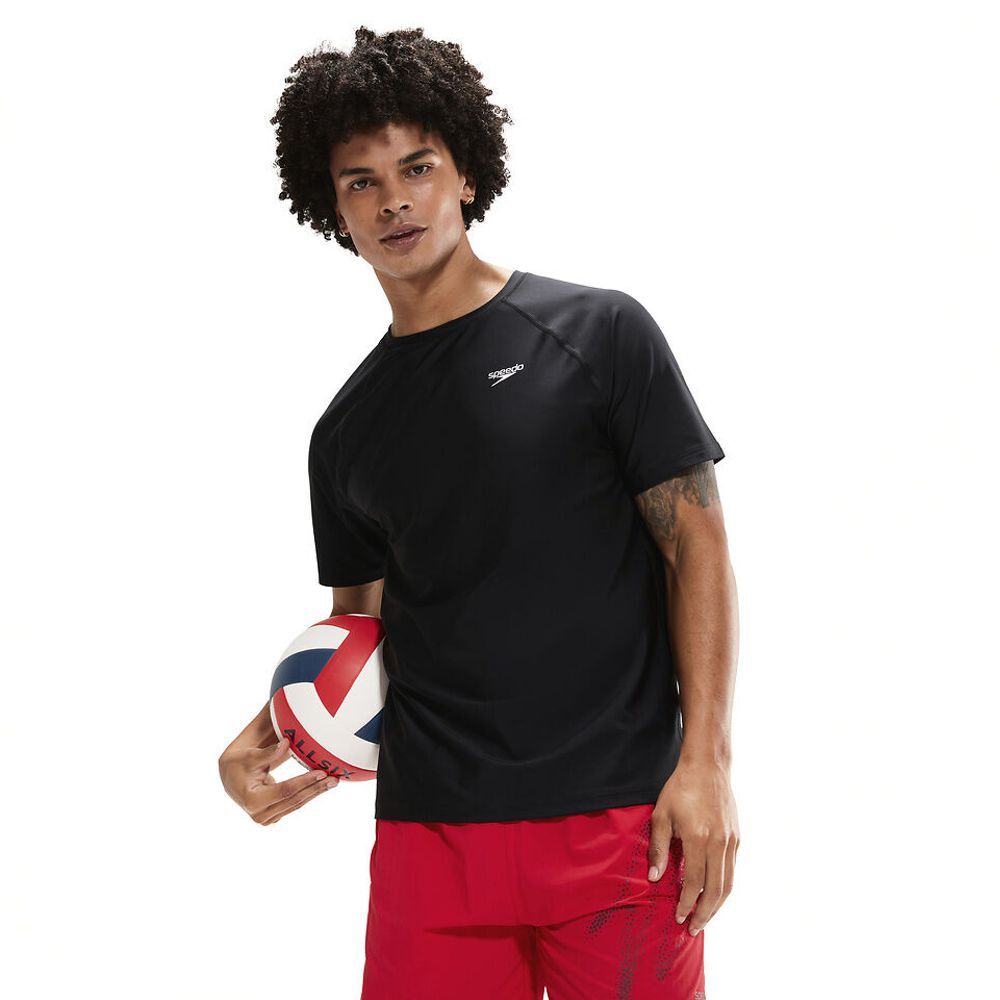Speedo Men's Essential Short Sleeve Swim Tee Sun Top, Men's Rashie - Black [Size: X Small]