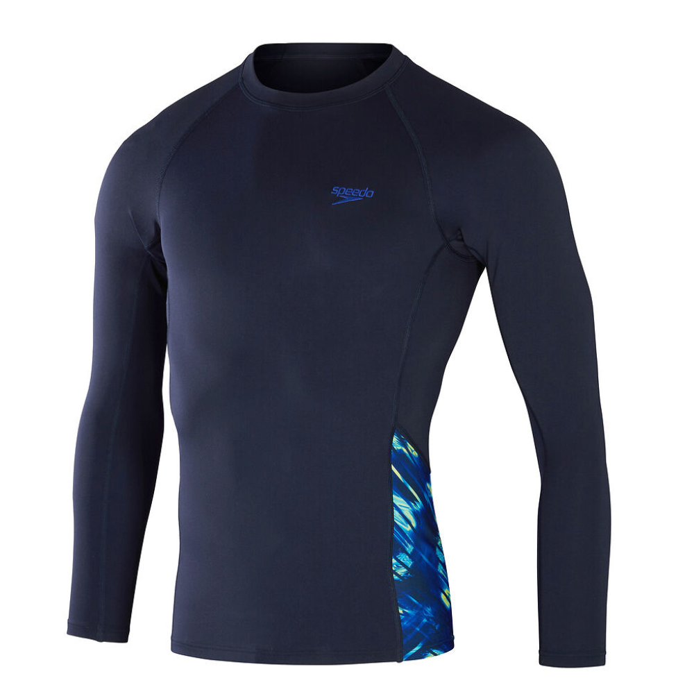 Speedo Men's Printed Long Sleeve Sun Top, Men's Rashie - True Navy/True Cobalt [Size: XS]