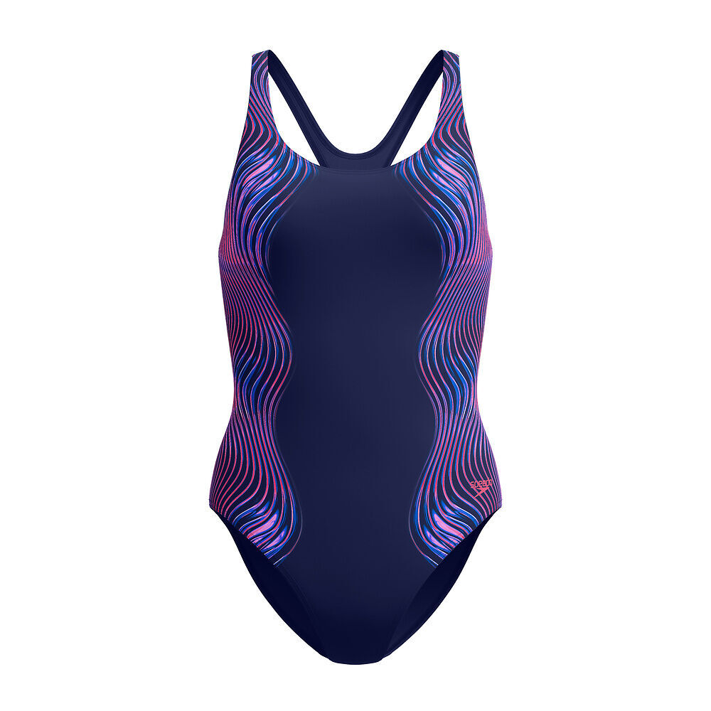 Speedo Women's Engineered Print Butterfly Back One Piece Swimsuit - Peacoat, Women's Swimwear [Size: 12]