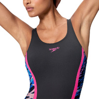 Speedo Women's Printed Splice Legsuit One Piece Swimsuit - Anthracite/Margarita Pink [Size: 10]