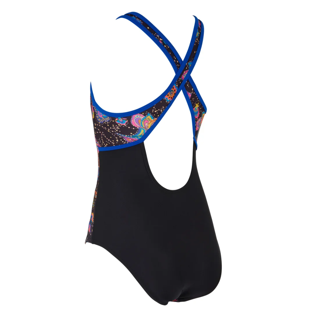 Be spotted in one of zoggs most eye catching designs this swim season! If you're looking for a secure fit and coverage the Girls Spot Hi Front Crossback One Piece with its wide straps, crossback design and high neckline certainly hits the spot.