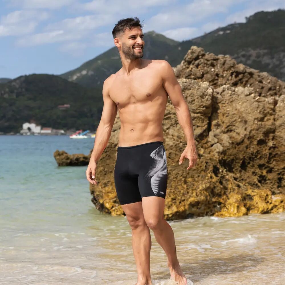 Zoggs Men's Profile Print Mid Jammer Black - Men's Jammer Swimwear [Size: 14]