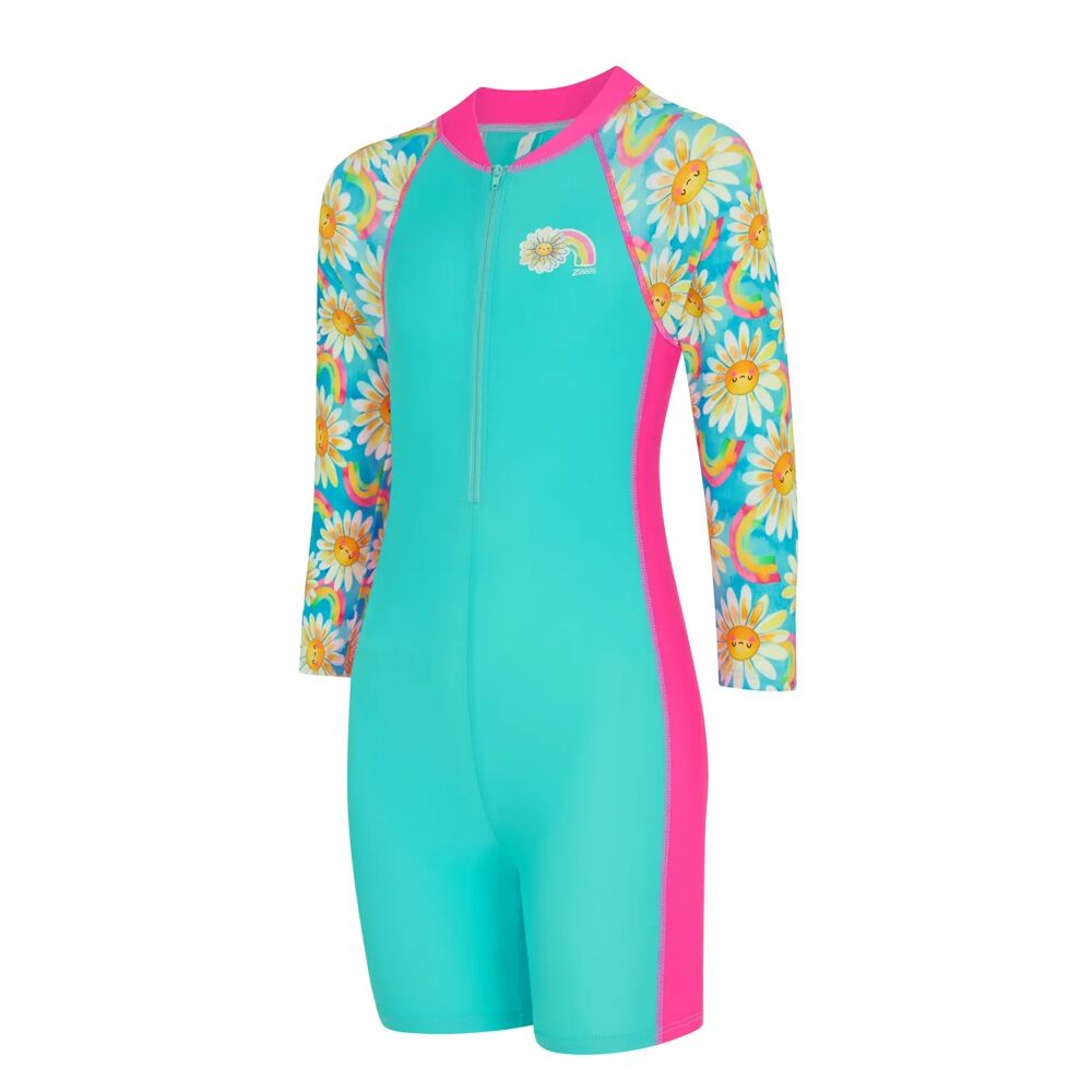 Zoggs Toddler Girls Daisy Print Long Sleeve All In One Swimwear - Multi, Girls Swimsuit [Size: 2Y]