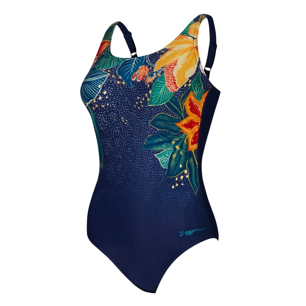 Zoggs Women's Mandira Adjustable Scoopback Swimsuit - Navy/Multi, Women's Swimwear [Size: 10]